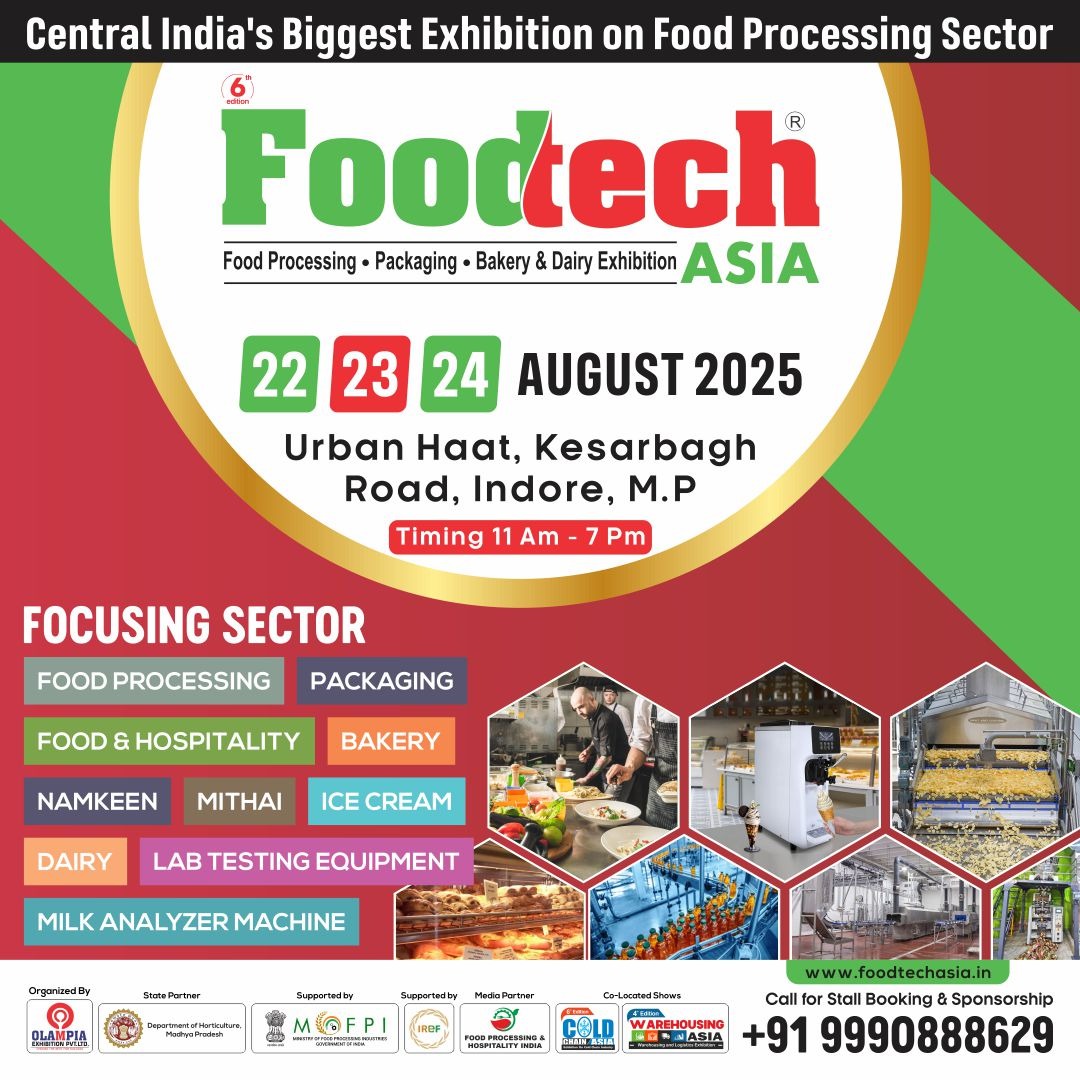 The countdown begins for one of India’s most anticipated B2B gatherings in the food and beverage industry—FoodTech Asia Expo, now entering its 6th dynamic edition. Set against the vibrant backdrop of Indore, a city known for its culinary heritage and industrial growth, this three-day extravaganza promises to be a powerhouse of innovation, networking, and business opportunities.