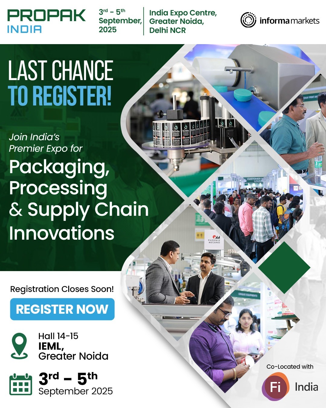 Time is running out to be part of India’s premier event for Packaging, Processing & Supply Chain solutions - ProPak India 2025.