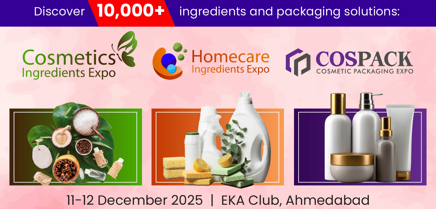 The Cosmetics & Homecare Ingredients Expo will take place on 11–12 December 2025 at EKA Club, Ahmedabad, bringing together the region’s cosmetics, personal care, and homecare industry under one roof.
