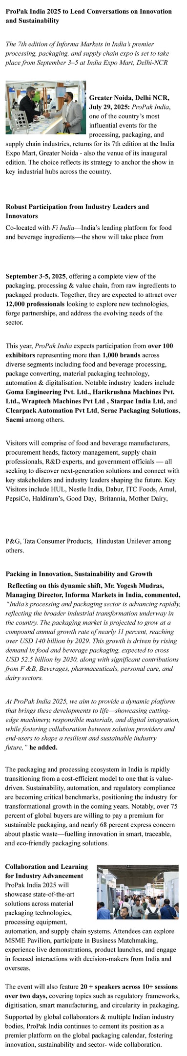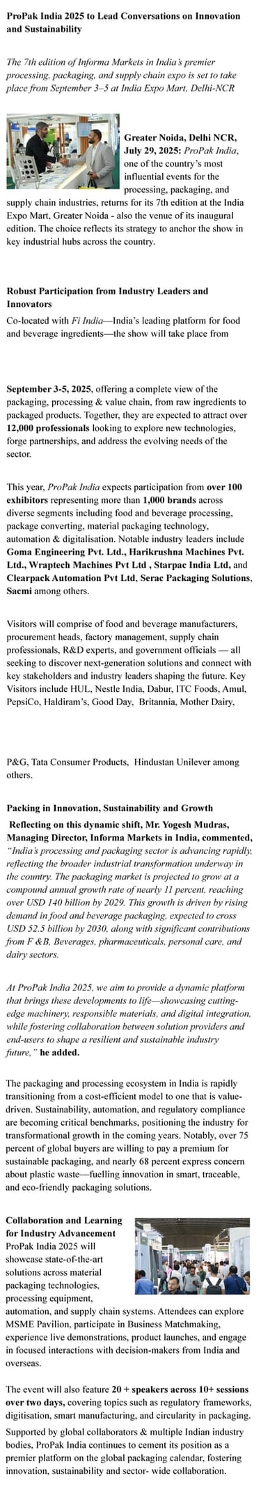 #ProPakIndia2025 #PackagingInnovation #SmartProcessing #FoodTechIndia #SustainablePackaging #AutomationInPackaging #FoodIndustryInsights #PackagingExpo