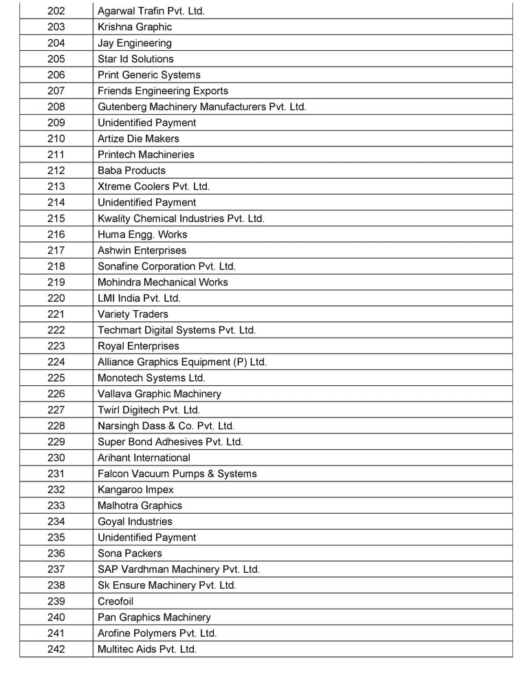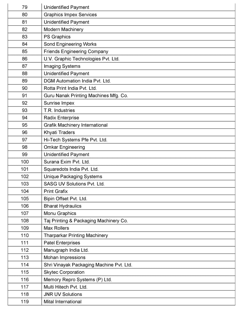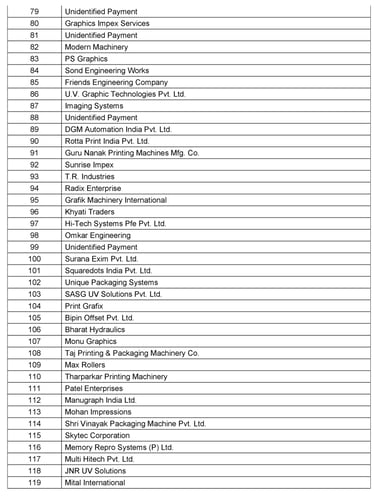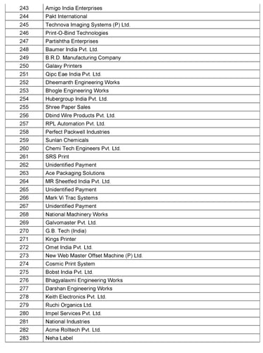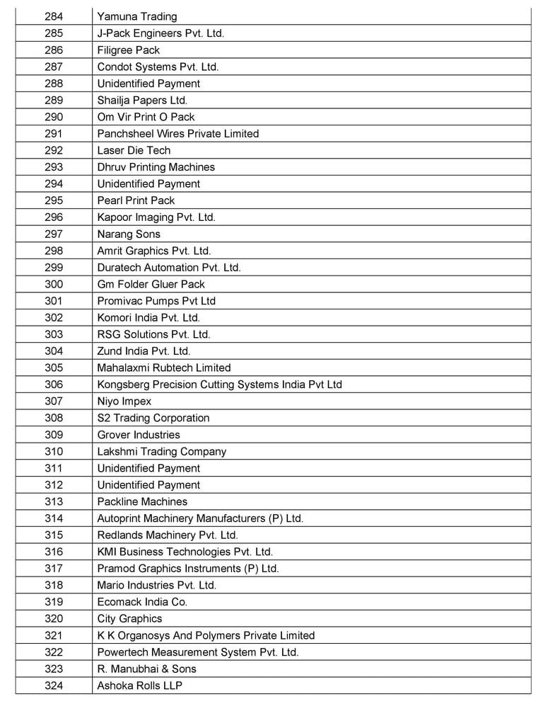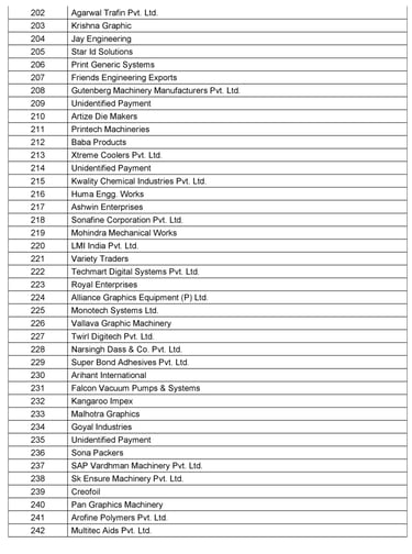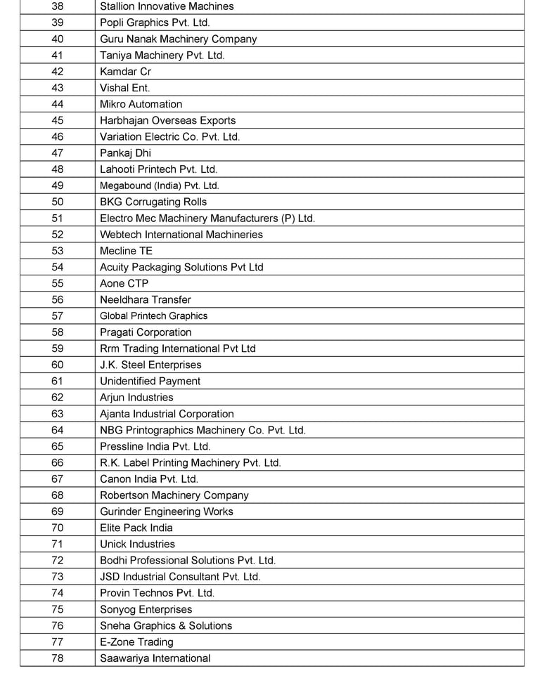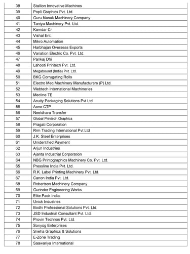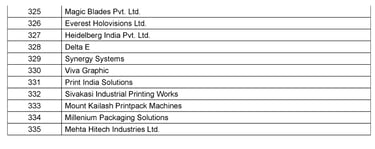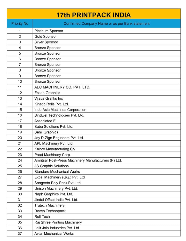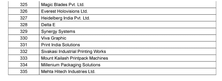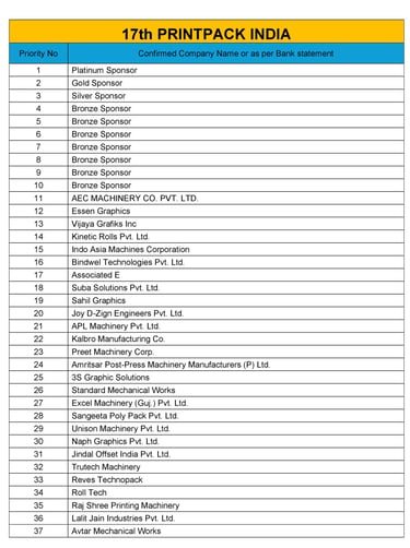 List of Exhibitors Who Reserved Their Space on Day 1 with Payment for PRINTPACK INDIA 2027: