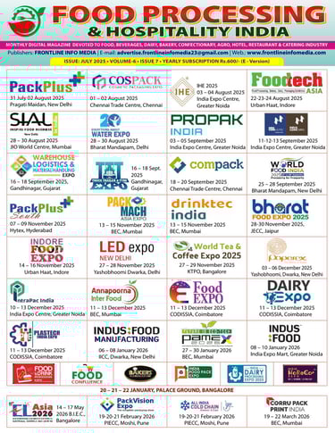 Publishers of Industrial Magazine - "Food Processing & Hospitality India" - Catering to Food, Food Processing, Packaging, Dairy, Bakery, Confectionery and Hospitality Industry.